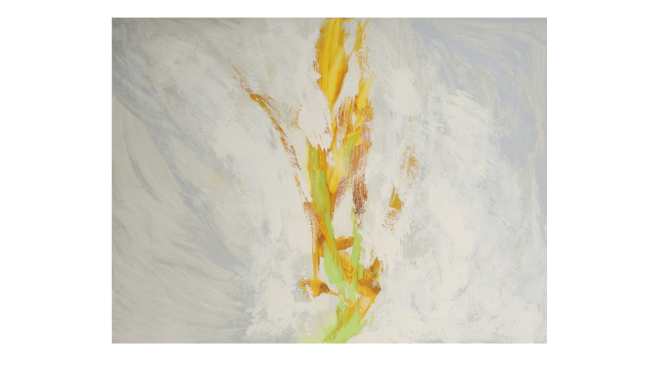 Одно дело – смотреть на картину своими глазами и совсем другое, когда куратор проекта и сам художник окунают зрителя в другой мир. Что-то подсказывают, рассказывают, обращают внимание на детали. Например, в работе “Переживший зиму” не сразу можно угадать, что за белыми, желтыми, землянистыми и зелеными красками спрятана соломинка под снегом. Видение картины меняется мгновенно, ей тут же хочется придумать свою историю создания, угадать настроение и мысли художника.
