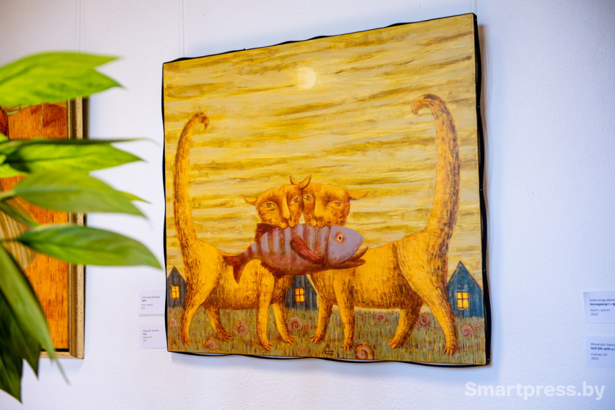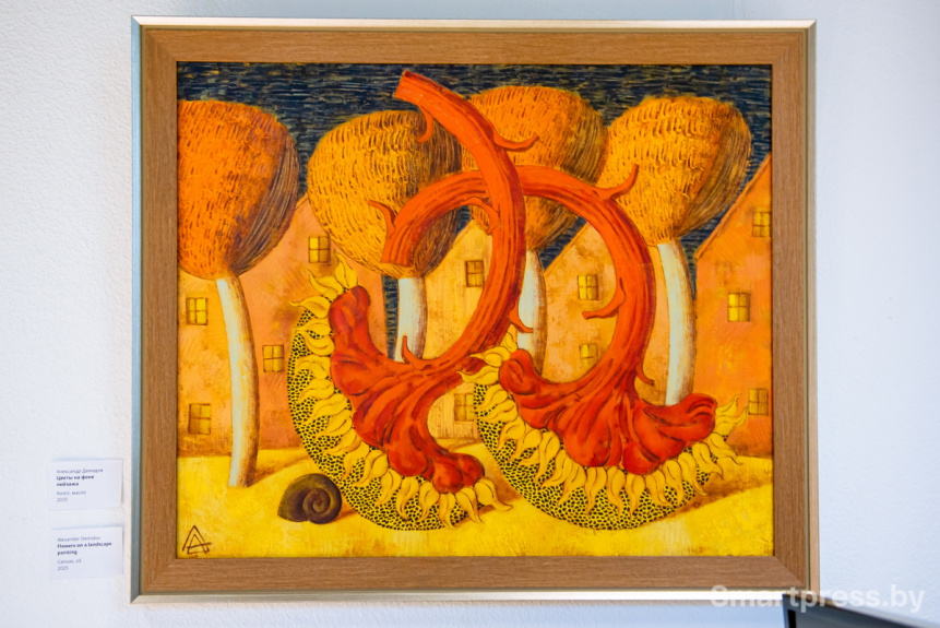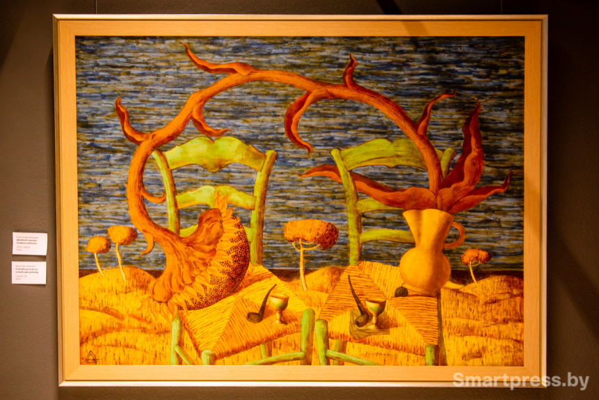 Деревья причудливой формы, странный дом, “ожившие” штопоры… В картинах белорусского художника Александра Демидова хочется рассмотреть всё: сюжет, 50 оттенков желтого (этим цветом Демидов мастерски владеет) и вложить в каждую работу свой смысл. Параллели проводить можно, вот только художник сразу предупреждает: “Это мои фантазии”. В офисе редакции Smartpress.by дипломаты и представители бизнеса смогли увидеть работы Александра Демидова в рамках проекта Art at Work.