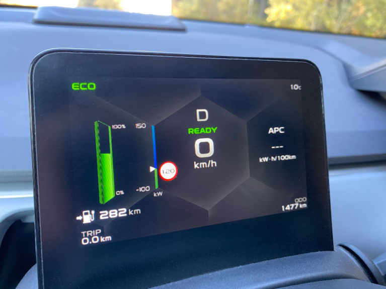 А теперь давайте по цифрам: мы брали автомобиль с 282 километрами запаса хода. В процессе дня зарядили 70 километров, а всего проехали на ней 151 километр. При возврате “Геометрии” запас хода составлял 208 километров. Путем несложной математики вычисляем, что должен был остаться 201 километр. Откуда взялись еще 7 км? Все просто: последние полтора часа мы катались на машине в час-пик, и она немного зарядилась за счет рекуперации.