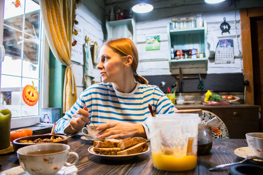 – Я каждый день растапливаю печь, с ней сразу тепло и уютно становится. Хочется, чтобы в ней что-то шкварчало, – говорит Татьяна, когда мы садимся за стол с видом на печку.