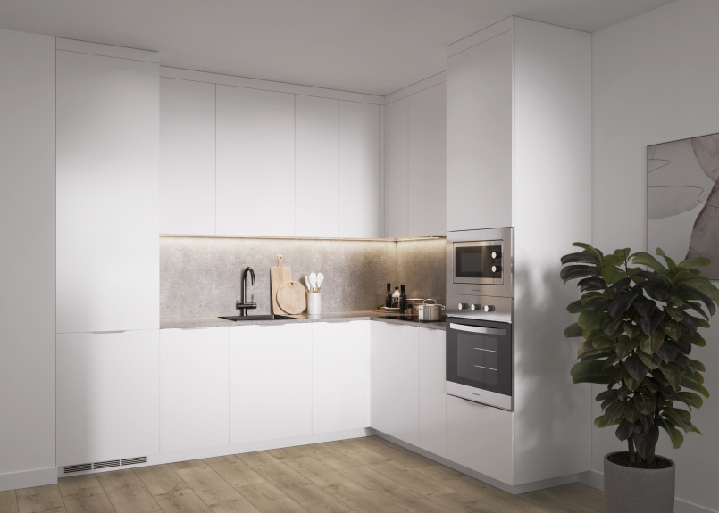 Коллекцию можно дополнить готовой кухней Lagom Kitchen+. Дизайнеры разработали четыре варианта кухни в разных цветах: серый, капучино и два белых – в современном и классическом стиле. В комплект входит не только мебель с фасадами до потолка, но и техника: встроенный холодильник, посудомоечная машина, микроволновая печь, духовой шкаф и вытяжка. На свой вкус можно выбрать цвет столешницы, скиналь, мойку и смесители.