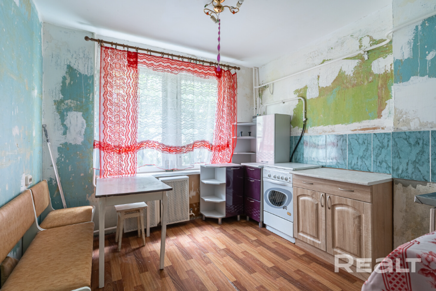 Квартира находится совсем рядом с проспектом Независимости. Среди достоинств квартиры: довольно большая кухня – более 9 кв. метров, и развитая инфраструктура – рядом парк, магазины, детские сады и школа. По словам продавца, квартира полностью под ремонт, поэтому продается без мебели.