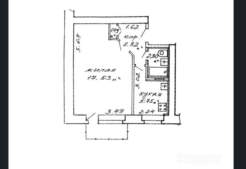 За $45 900 тысяч хотят за квартиру в пятиэтажке на Богдановича общей площадью всего 29 кв.метров ($1583 за метр).