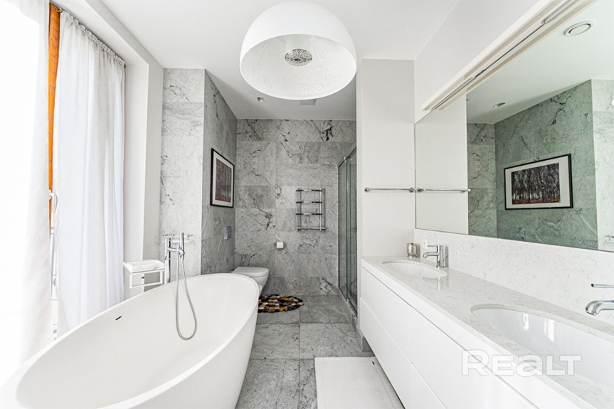 Первый пентхаус – это двухуровневые апартаменты площадью 496 кв.м. "Троицкое предместье, Ратуша, Немига и набережная - в пешей доступности, но главное - видны, как на ладони, с вашей личной террассы – 122 кв.м", пишет продавец. Отмечает также, что в квартире раньше никто не жил.