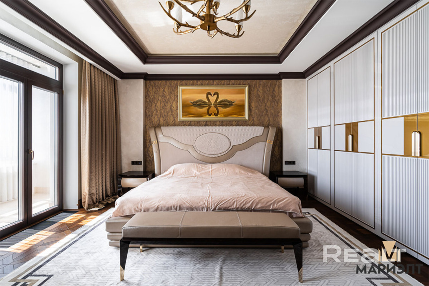 В квартире выполнен дизайнерский ремонт, установлена система умный дом.