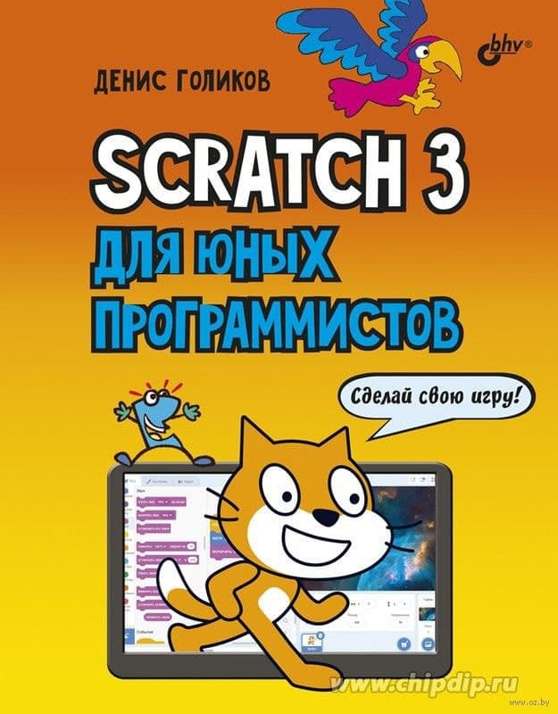Первой в топе стала книга "Scratch для юных программистов" Дениса Голикова. Голиков — детский тренер по компьютерной грамотности, автор методических пособий для детей по обучению программированию на Scratch. То, что дети не очень хотят учиться, — давно известный факт. Поэтому нужно сделать обучение таким, чтобы заинтересовать и увлечь, а уроки превращались в их любимую игру. Книга “протестирована” на сотне детей 7-12 лет. Материал рассчитан на самостоятельное, без помощи взрослых, изучение Scratch детьми, которые знакомы с компьютером и знают основы математики. Автор рассказывает, как скачать и установить Scratch, написать первую программу, мультфильм или игру. Более того, в книге приведены примеры создания более сложных мультфильмов и компьютерных игр.