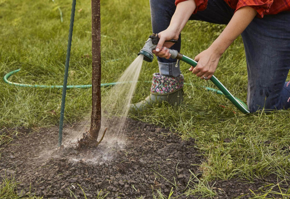 Влагозарядный полив стоит проводить в сухую погоду, за две недели до заморозков. Проводится он поливом под корень. Объем воды для полива деревьев зависит от его возраста: для молодого растения, возрастом 1-3 года, хватит и 30-50 литров воды, для деревьев возрастом до 10 лет понадобится 70-100 литров, а вот, если дереву уже больше 10 лет, то для его полива нужно использовать до 150 литров.
