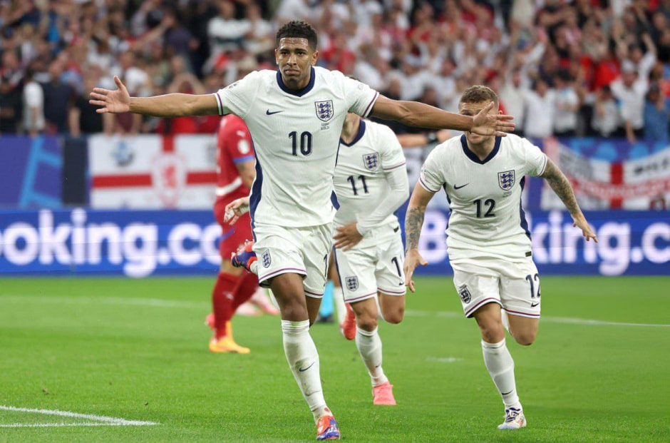Это был напряженный, но не очень зрелищный поединок. Оправдывая статус одних из главных фаворитов турнира, англичане организовали мощный стартовый натиск. И блицкриг удался – форвард мадридского "Реала" и основной претендент на "Золотой мяч" Джуд Беллингем головой открыл счет уже на 13-минуте.