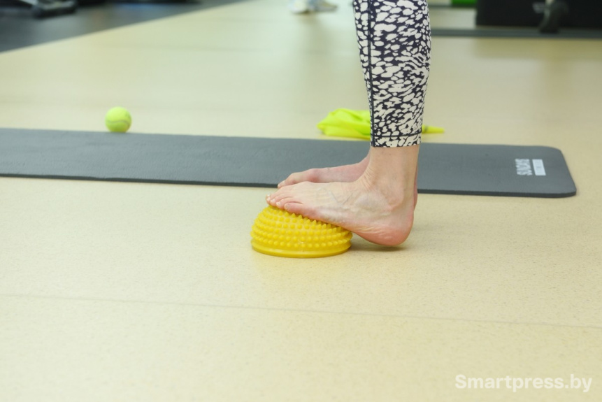 Завершаем упражнения на стопу "топтанием" по мягким колючим полусферам.