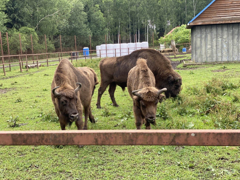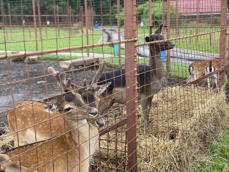 Далее вольерах изобилие копытных - особенно хороши косули и барашки, есть даже семейство зубров.