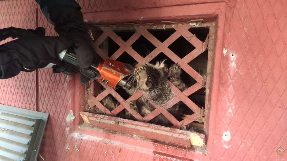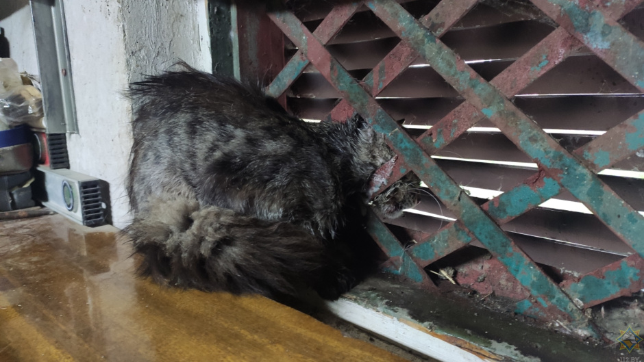 "13 июля 2021 в 12.05 спасателям Гомеля поступило сообщение о необходимости оказания помощи в извлечении кота по улице Горбатова. По прибытии к месту вызова спасателей было установлено, что голова кота зажата в металлической решетке вентиляционного окна подвального помещения", - говорится в сообщении.