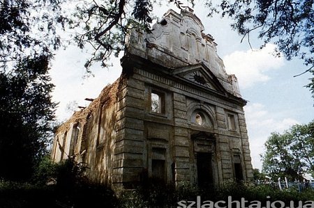 Церковь найти несложно - она видна с дороги. Здание возведено в 1791-1802 гг. как костел Рождества Девы Марии и Святого Станислава на средства Адама Хмары - хозяина усадьбы в деревне по соседству.