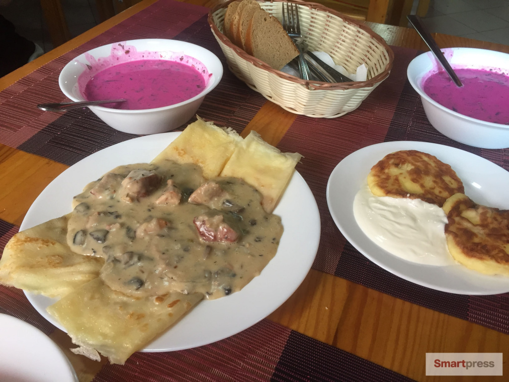Зато можно было спокойно перекусить в одном из двух кафе - каждое стилизовано в военной тематике. Тихо играют военные песни, цены в меню тоже "тихие" - от Br3,5 за холодник до Br6 за мачанку.