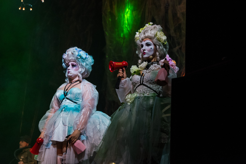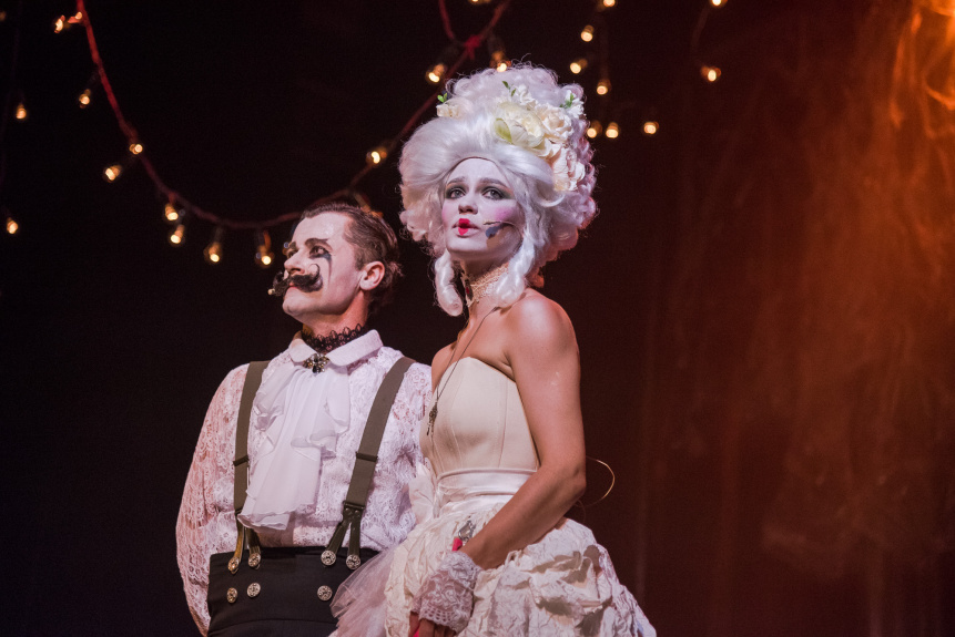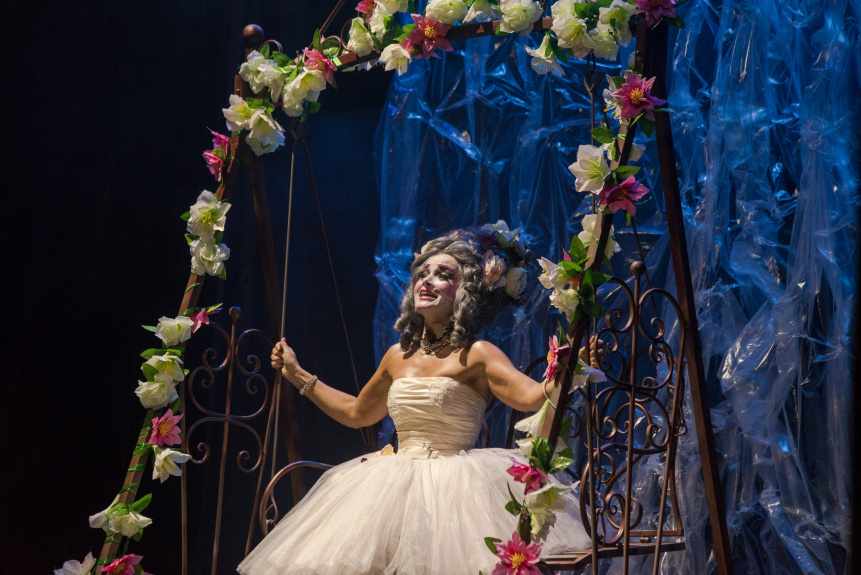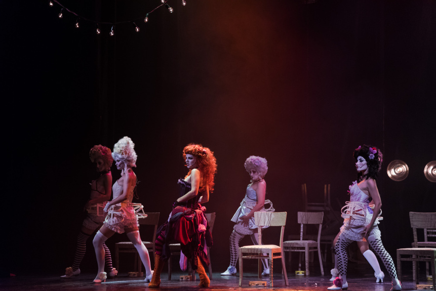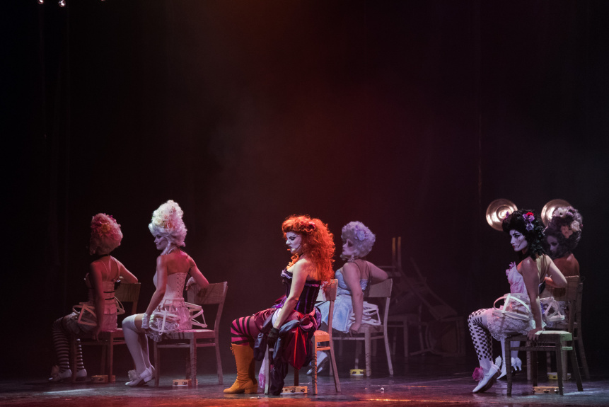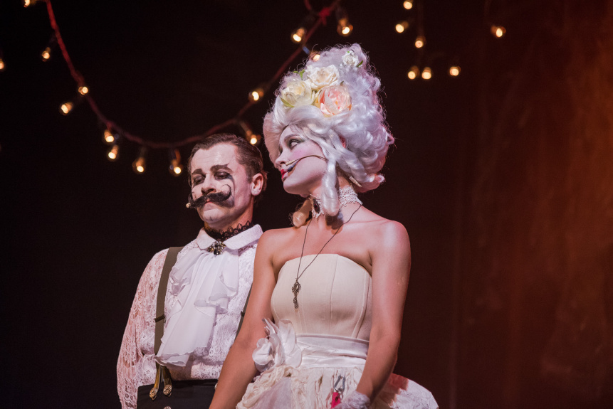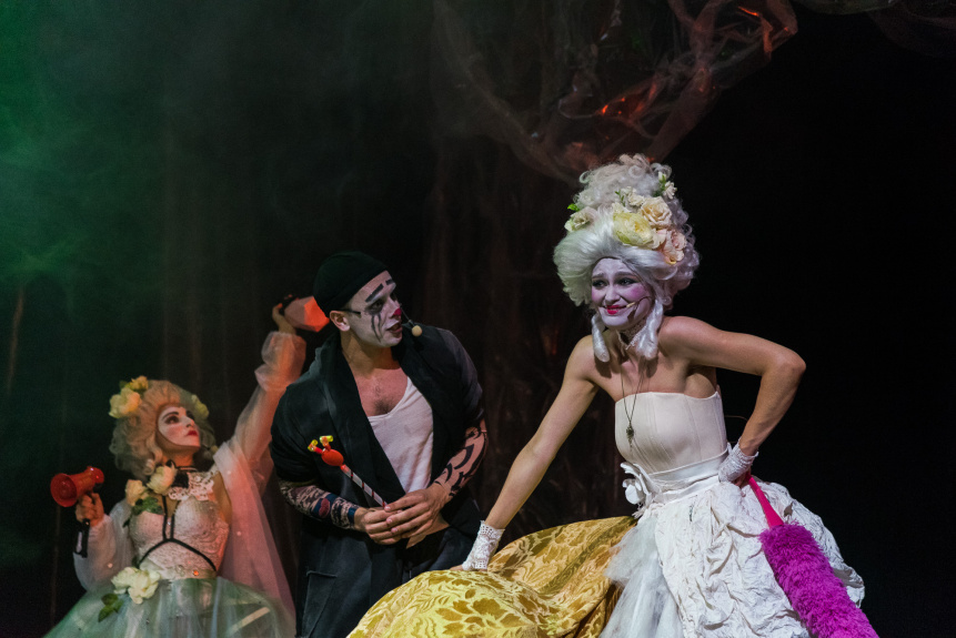 Не буду скрывать: премьерный показ не прошел без шероховатостей. Освоиться в новых костюмах, был непросто, поэтому иногда в массивности платьев пропадала яркость жестов, делая уже известные по предпоказу на публику номера скованными. Не все актеры освоили, как работать с ярким гримом: без выразительной мимики нарисованные лица казались из глубины зала безжизненными масками. Коллективу под силу провести работу над ошибками, начать играть фарс крупными мазками и добавить разнообразия в работу второстепенных персонажей. Но даже скептично настроенного зрителя подкупал драйв, с каким актеры работали на сцене. Горение своим делом —редкая для части наших театров вещь.