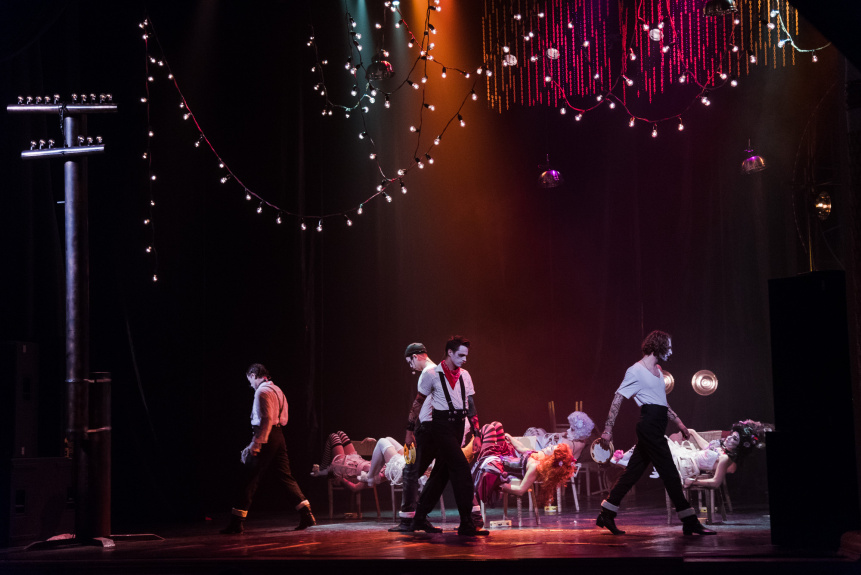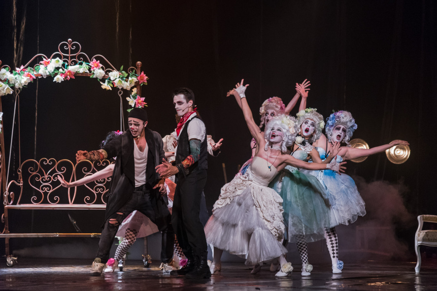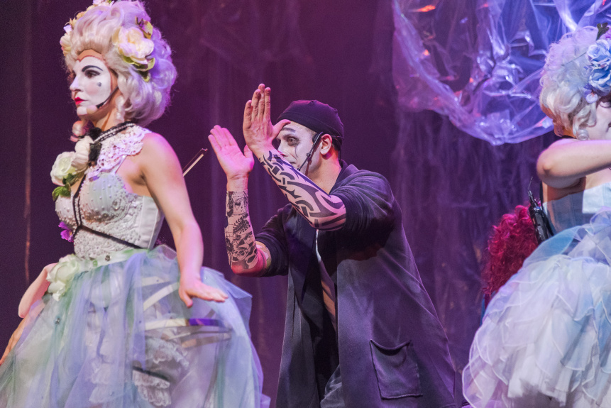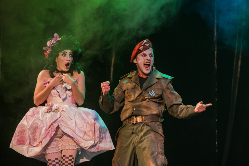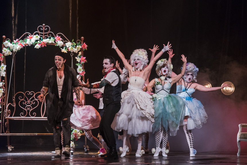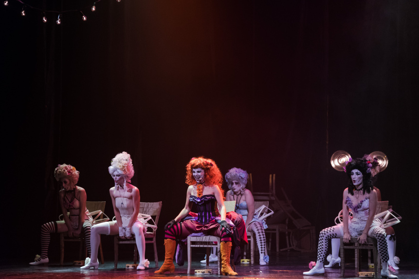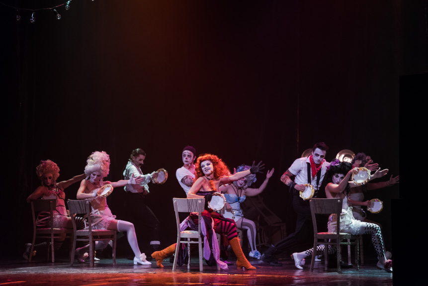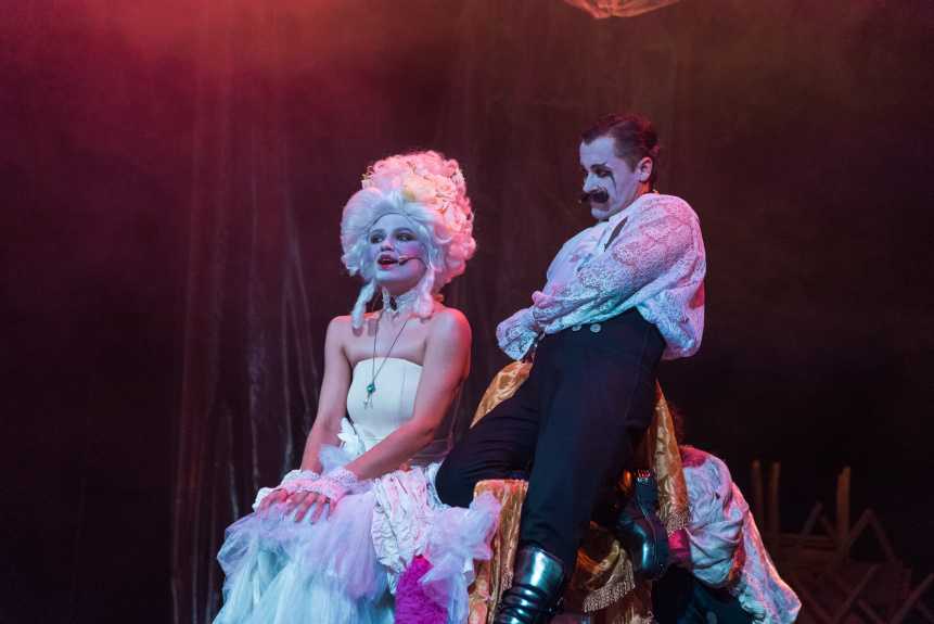 Не буду скрывать: премьерный показ не прошел без шероховатостей. Освоиться в новых костюмах, был непросто, поэтому иногда в массивности платьев пропадала яркость жестов, делая уже известные по предпоказу на публику номера скованными. Не все актеры освоили, как работать с ярким гримом: без выразительной мимики нарисованные лица казались из глубины зала безжизненными масками. Коллективу под силу провести работу над ошибками, начать играть фарс крупными мазками и добавить разнообразия в работу второстепенных персонажей. Но даже скептично настроенного зрителя подкупал драйв, с каким актеры работали на сцене. Горение своим делом —редкая для части наших театров вещь.