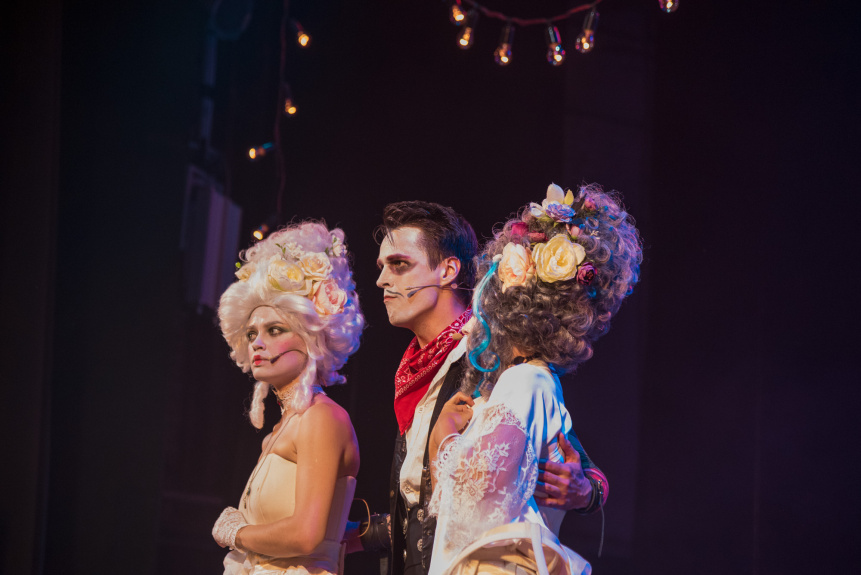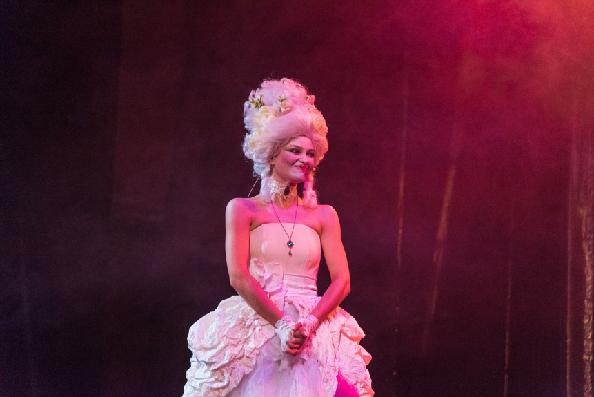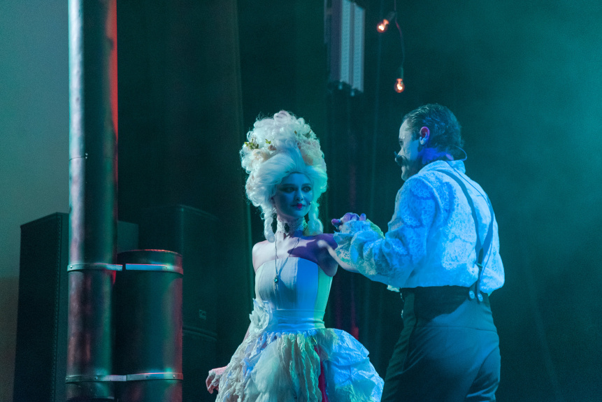 Все-таки нынешняя премьера— это еще про доказать самим себе, что театр как вид искусства еще чего-то стоит. Это стремление читалось в том азарте, с которым команда "Фигаро" подошла к постановке: в готовности репетировать в изнуряющую 30-градусную жару, когда и двигаться-то лишний раз не хочется, а тут надо постоянно танцевать. В превью за месяц до премьеры во дворике Музея Якуба Коласа: спектакля еще как такового нет, костюмы еще шьются, парики на границе стоят, а уже хочется рассказать о новой работе аудитории. И в 10-часовых прогонах в театре, когда за несколько дней до премьеры нужно освоить пространство сцены (других условий для частного театра, арендующего чужую сцену, не предусмотрено). И в том волнении, с каким опытный режиссер Анастасия Гриненко выходила на финальные поклоны — режиссер видела, что публика приняла не самый популярный в наших краях жанр, хотя, казалось бы, в театральной среде сейчас не до экспериментов.