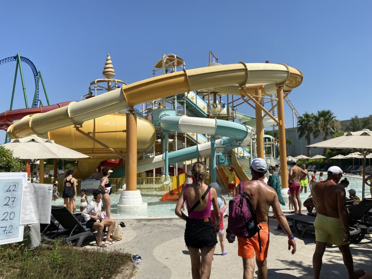 Главный минус - очереди на аттракционы. 30-50 минут стоять в очереди на горку в +40+ и не всегда в тени - сомнительное удовольствие. Самое лучшее время - с 10 до 11 утра, когда очередей на горки нет. В конце дня также активность снижается.