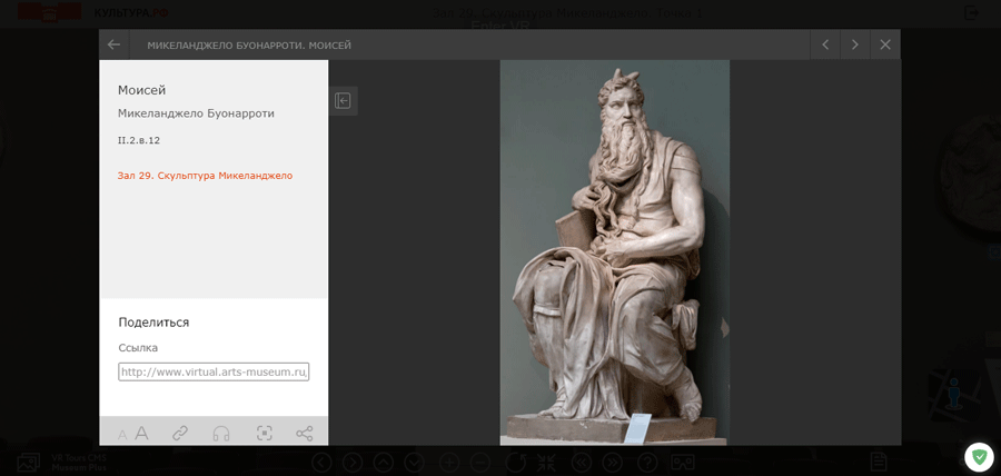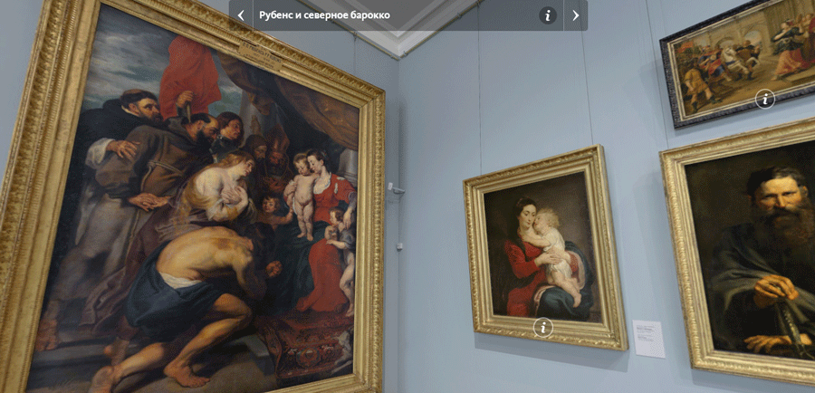 А вот дополнительной текстовой или аудио-информации во время виртуального тура не предусмотрено. Но сведения о некоторых шедеврах можно найти в онлайн-каталоге музея.