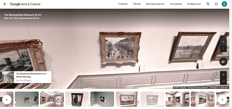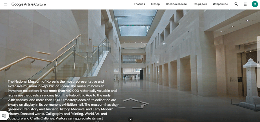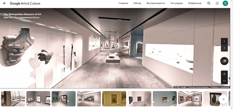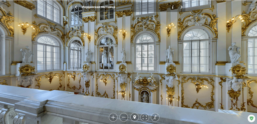 Принцип навигации стандартный – загрузить, идти по стрелке, приблизить – отдалить, из всех представленных в нашем топе музев он самый плавный и комфортный.