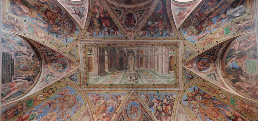Создатели виртуального тура по музею Ватикана определенно понимали, что потолки здесь не менее ценны, чем стены и экспонаты, и потому предусмотрели возможность 360-градусного обзора. Обладателям VR-очков вообще можно позавидовать.
