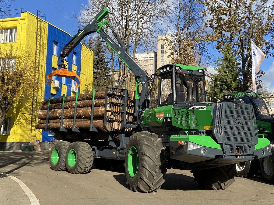 Одна из новинок – ведущая модель в линейке лесозаготовительной техники "АМКОДОР" – форвардер AMKODOR FF1461. Новинка оснащена тандемными и однобалочными мостами и имеет колесную формулу 6х6. Грузоподъемность прицепа форвардера – 10 тонн.