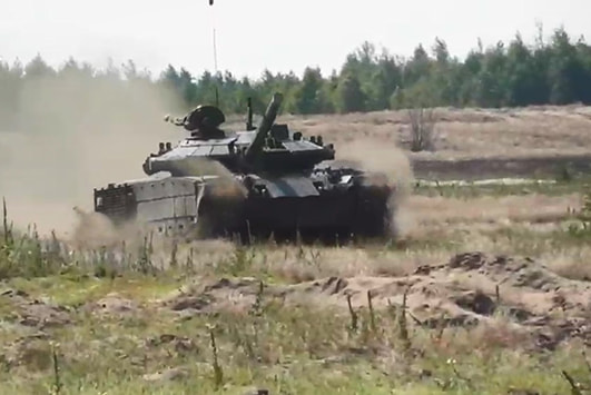 Белорусский модернизированный танк Т-72Б проходит полигонные испытания.