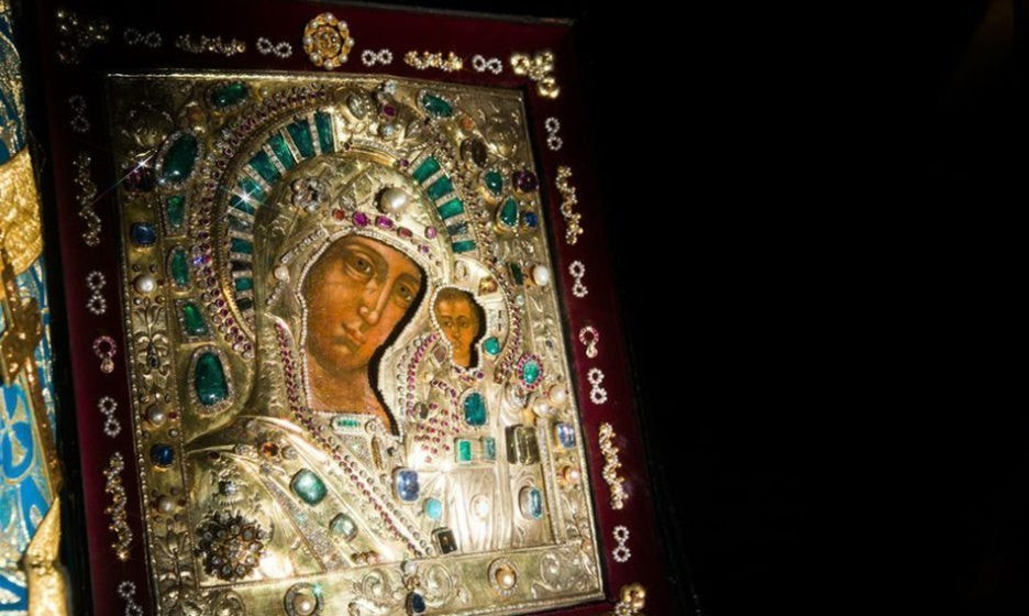 Икона Казанской Божьей Матери обнаружилась в складском помещении резиденции патриарха в Переделкино, среди других образов.