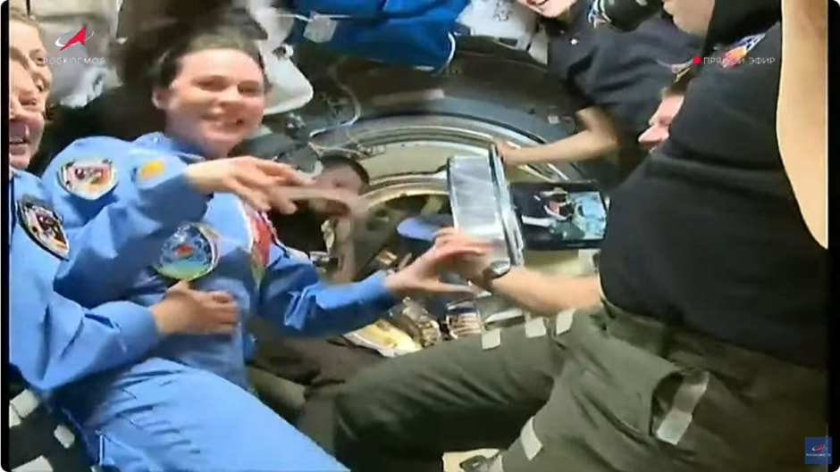 Сообщается, что после стыковки транспортного пилотируемого корабля "Союз МС-25" с МКС и открытия стыковочных люков вместе с Мариной Василевской на международную орбитальную станцию перешли космонавт "Роскосмоса" Олег Новицкий и астронавт НАСА Трейси Дайсон.