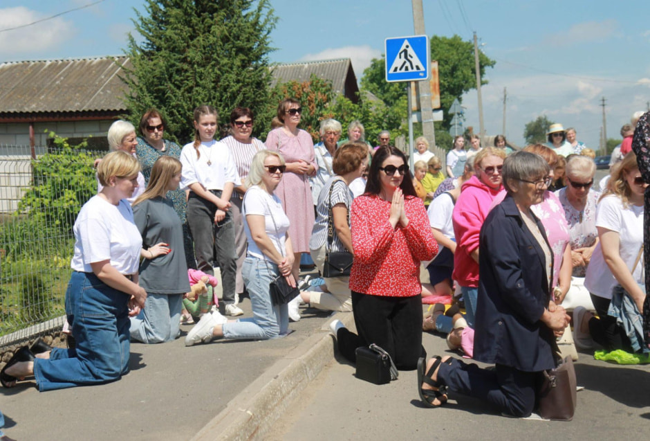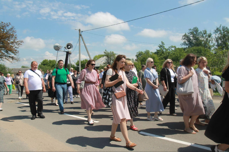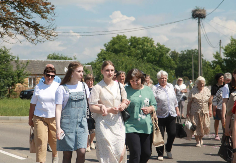 Затым пачалася працэсія - Святыя Дары пранеслі вуліцамі Ляхавічаў.