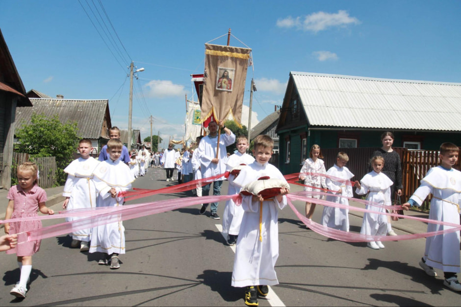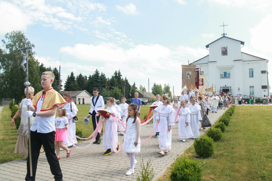 Сёння ў многіх населеных пунктах краіны прайшлі каталіцкія працэсіі Божага Цела, прымеркаваныя да ўрачыстасці Найсвяцейшага Цела і Крыві Хрыста. Як праходзіла гэтае прыгожае набажэнства ў Ляхавічах, глядзіце ў нашым фотарэпартажы.