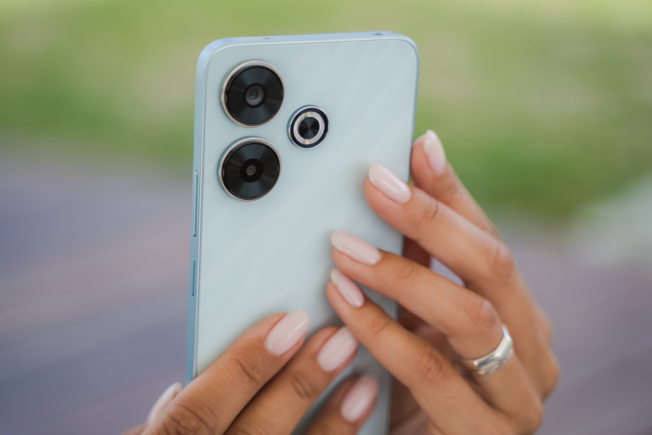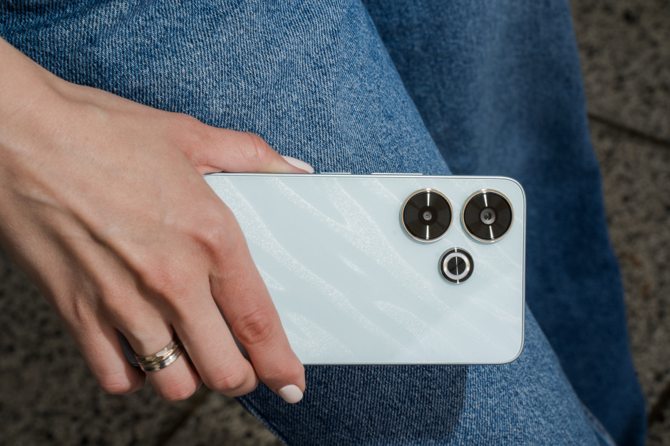 Redmi 13 выглядит красиво и стильно. Задняя панель выполнена из стекла, что редкость в данном ценовом сегменте. Хочется отметить и серебряные кольца вокруг камер, благодаря им дизайн выглядит премиально.