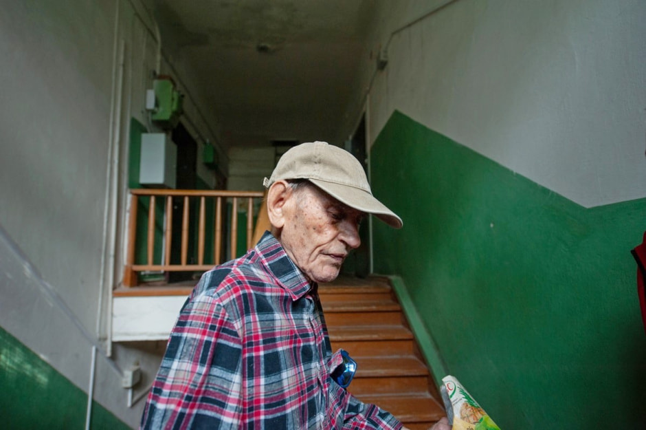 Оказывается, это старейший житель всей Осмоловки – Виктор Максимович (это отчество мужчины – Прим. ред.). Он как раз возвращается с прогулки: в шортах, рубашке, на голове кепка.