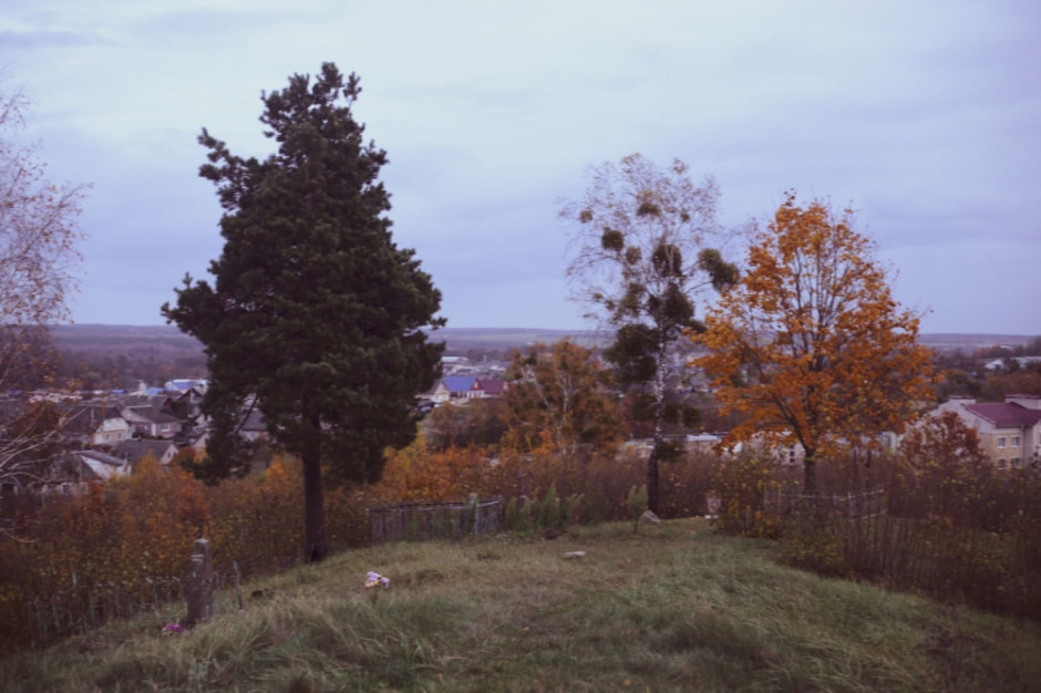 Могілкі на ўзгорку восеньскім вечарам. Фота Мікіта Пастухоў