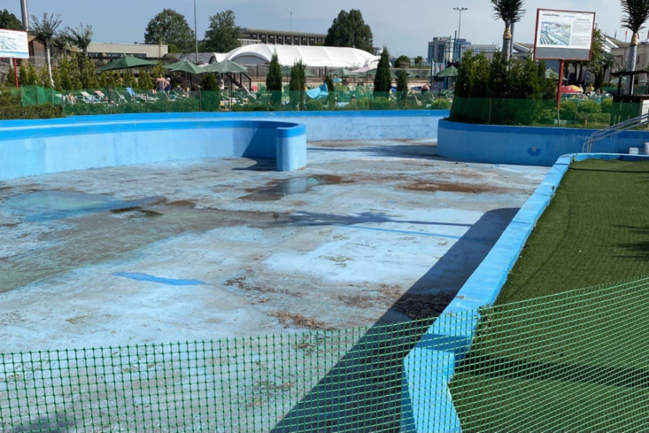 На суше тоже было перенаселение. Обещанная в полтора метра дистанция между лежаками - не соблюдалась. Обновление аквапарка, о котором громко заявлено, не коснулось лежаков. Пляжный сезон только начался, а лежаки уже дырявые.