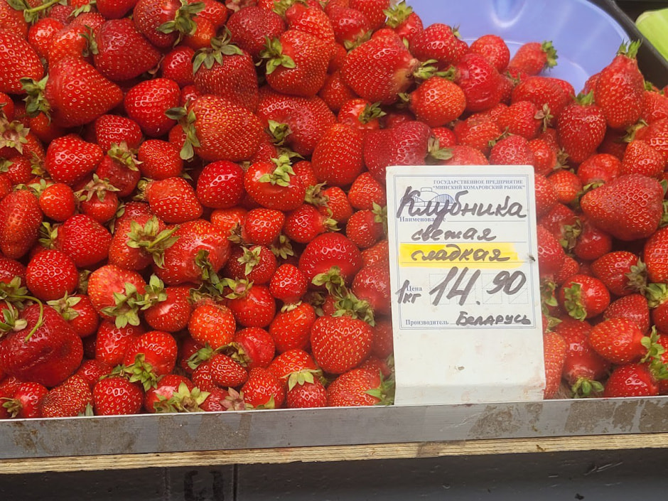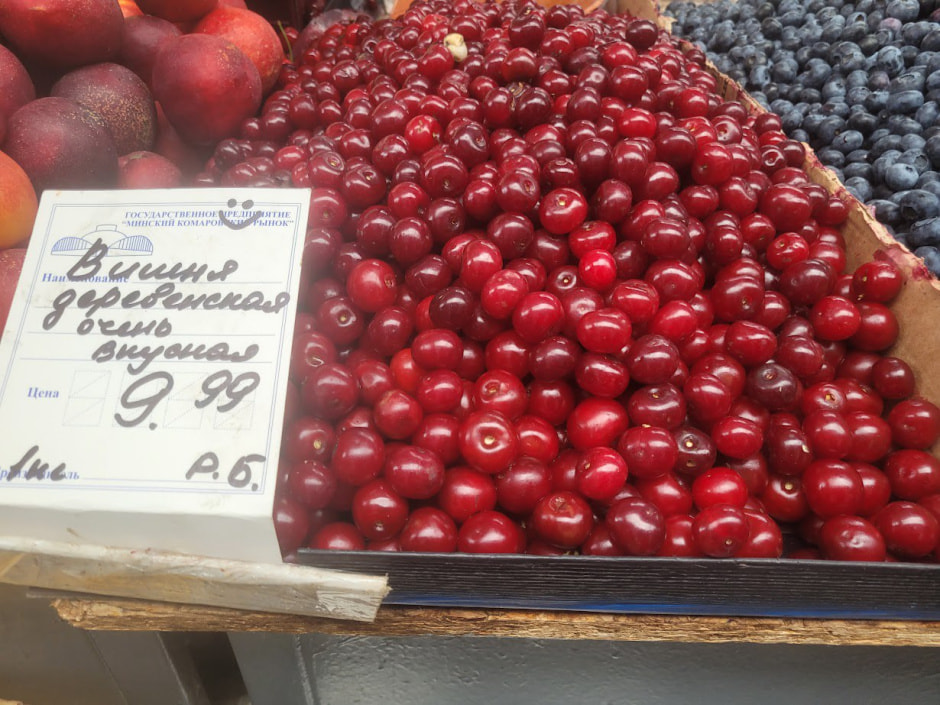 Цены на сезонные продукты на Комаровском рынке Минска летом меняются очень быстро. Кабачки там продают уже по 1,5 рубля за 1 кг, сладкий перец по 4 рубля за 1 кг, а голубику и черешню реализуют по одной цене – 17-20 рублей за 1 кг.