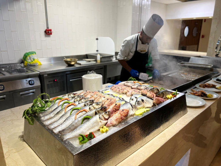Моя командировка предусматривала проживание в двух отелях: Rixos Seagate и Rixos Radamis. Полистайте галерею про шведский стол, но лучше не на голодный желудок.