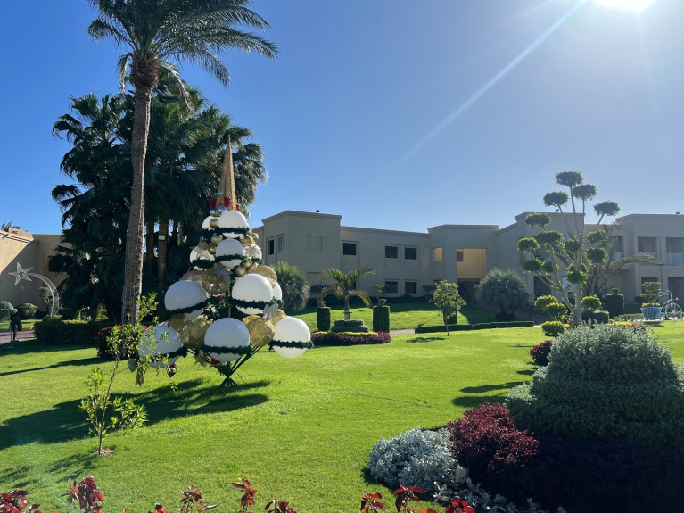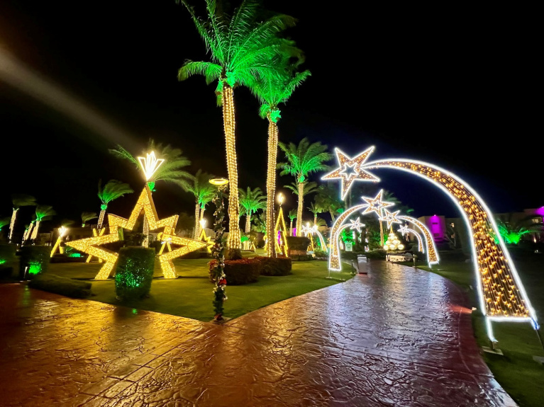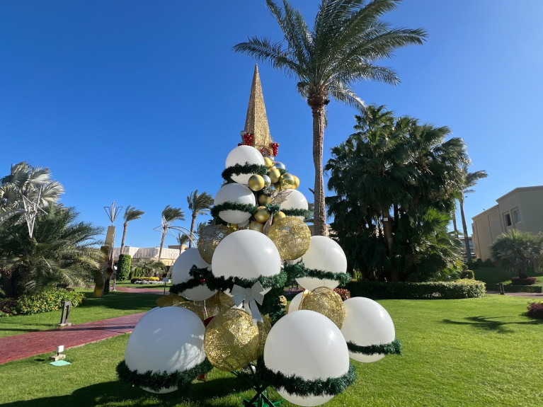 На Новый год должна быть елка. Это аксиома. На курортах Египта решили не спорить и поставили елки везде. Смотрится немного странно, настроение Рождества не очень чувствуется. Но, возможно, это запомнится - водить хоровод вокруг елки босиком.