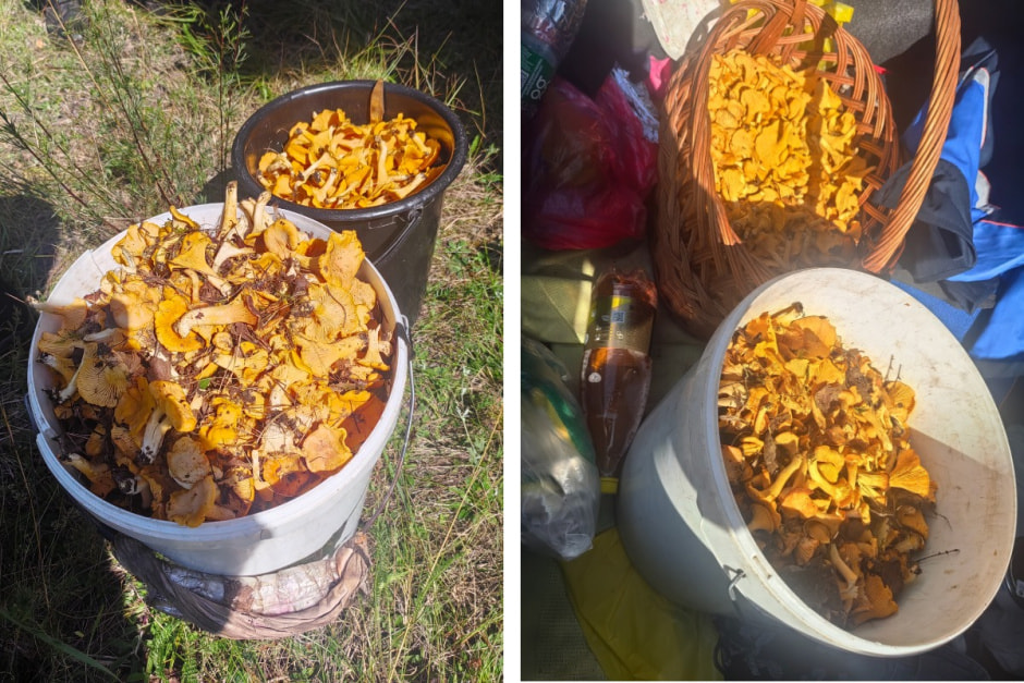 Так, грибник Дмитрий поделился фотографией сразу нескольких вёдер лисичек, отметив, что "за день дважды в лес съездил". По его словам, столь щедрый урожай он нашёл на Борисовском полигоне.