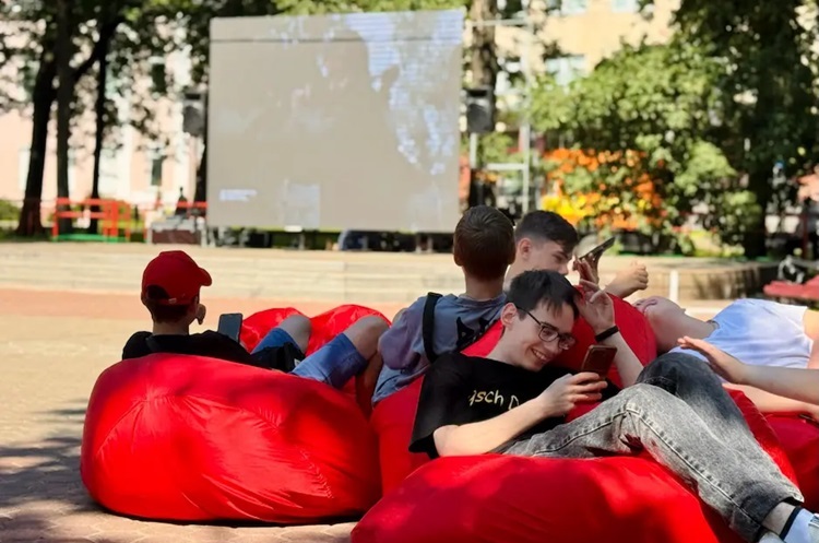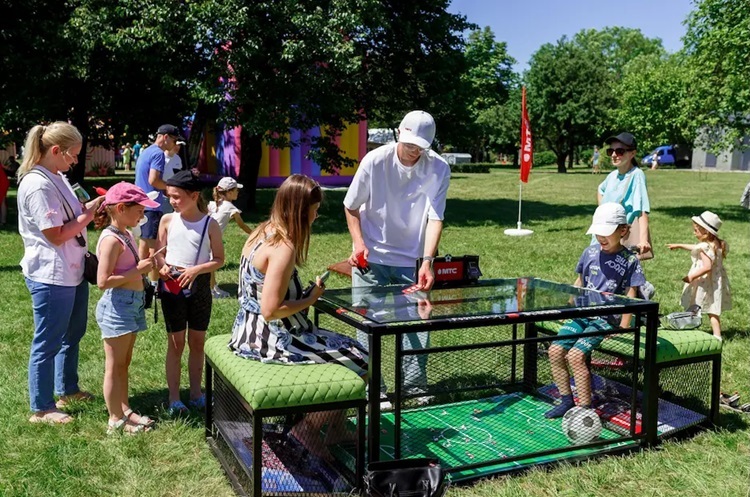 В столичном Яблоневом сквере на улице Калиновского МТС организовал зону отдыха и развлечений. Гостей встречала стильная лаунж-площадка с мягкими пуфами, где можно было расслабиться и насладиться праздником.