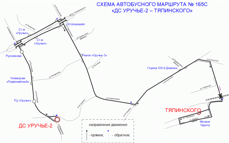 Автобусы №165С "ДС Уручье-2 - Тяпинского" будут ежедневно ходить от Академгородка, через универсам "Первомайский", метро "Уручье", рынка "Уручье-3" по улице Героев 120-й дивизии до улицы Тяпинского в поселке Сухорукие.
